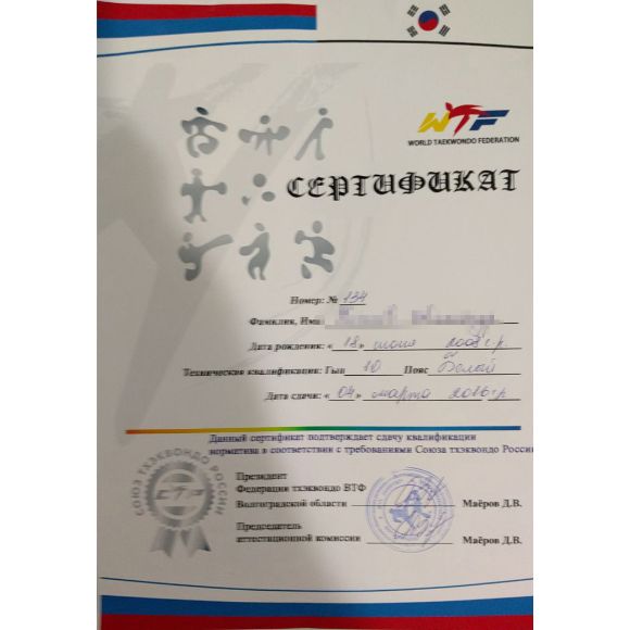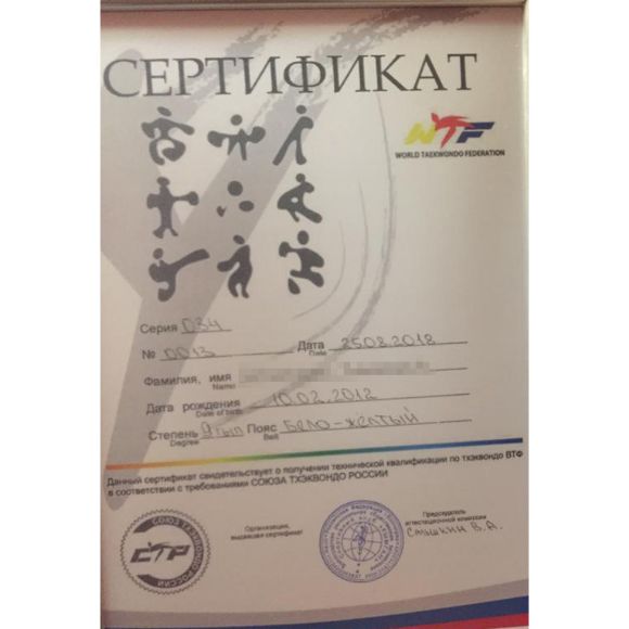 Единая форма сертификата на цветные пояса (присвоение ГЫП) в Союзе тхэквондо России вводится в соответствии с Правилами вида спорта тхэквондо.